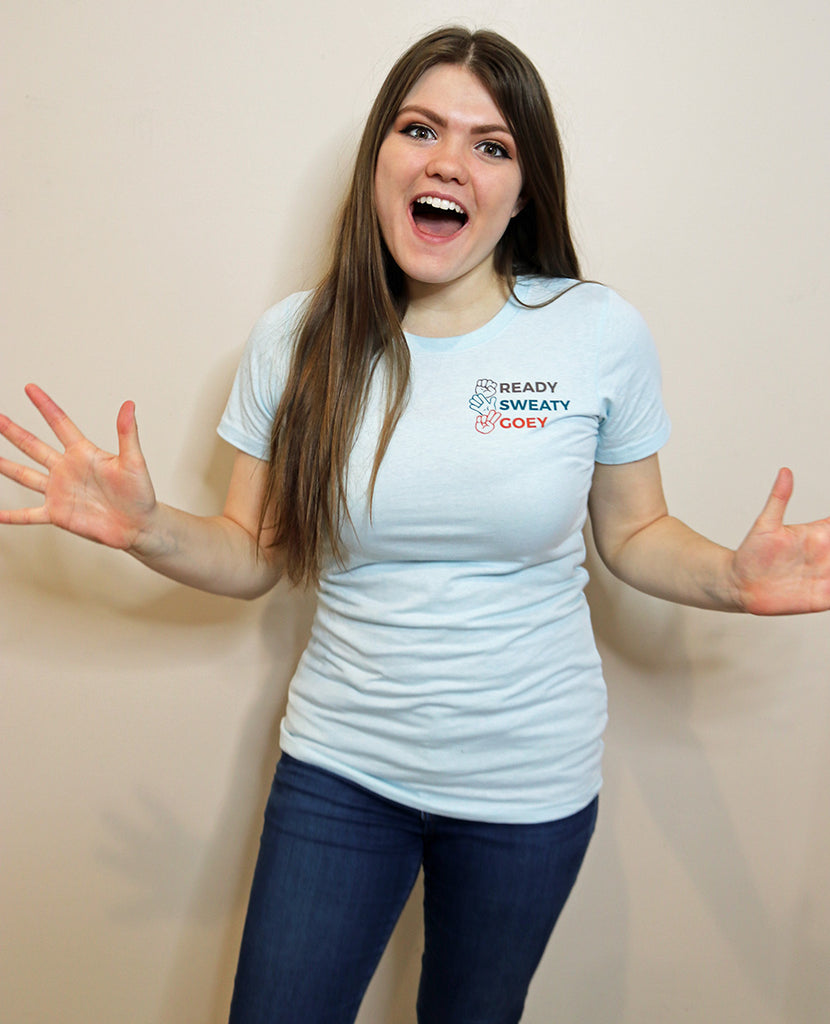 What's a better way to start an adventure than donning your own Ready Sweaty Goey Fitted Tee? It's super cute, comfortable, and perfect for a whole day of fun. *Shirt size runs small.