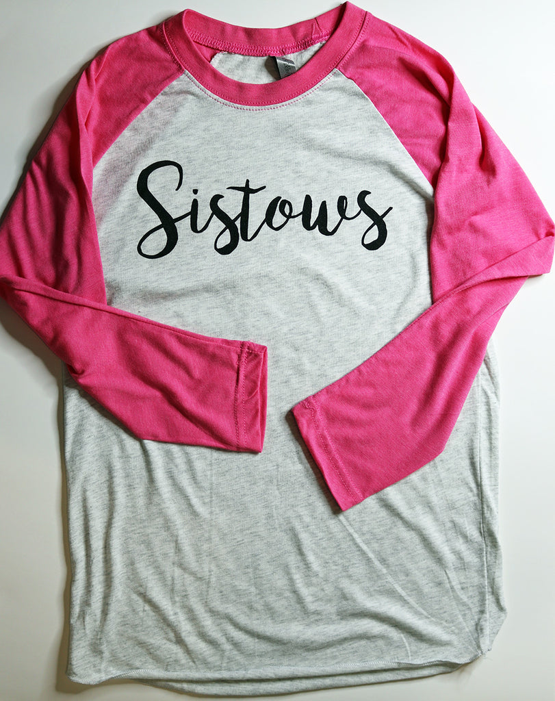 Show your love for Audrey and Jordan! This cute, long sleeve fitted baseball tee is your ticket to joining the Sistow Squad, and a perfect matching item to buy with a friend.